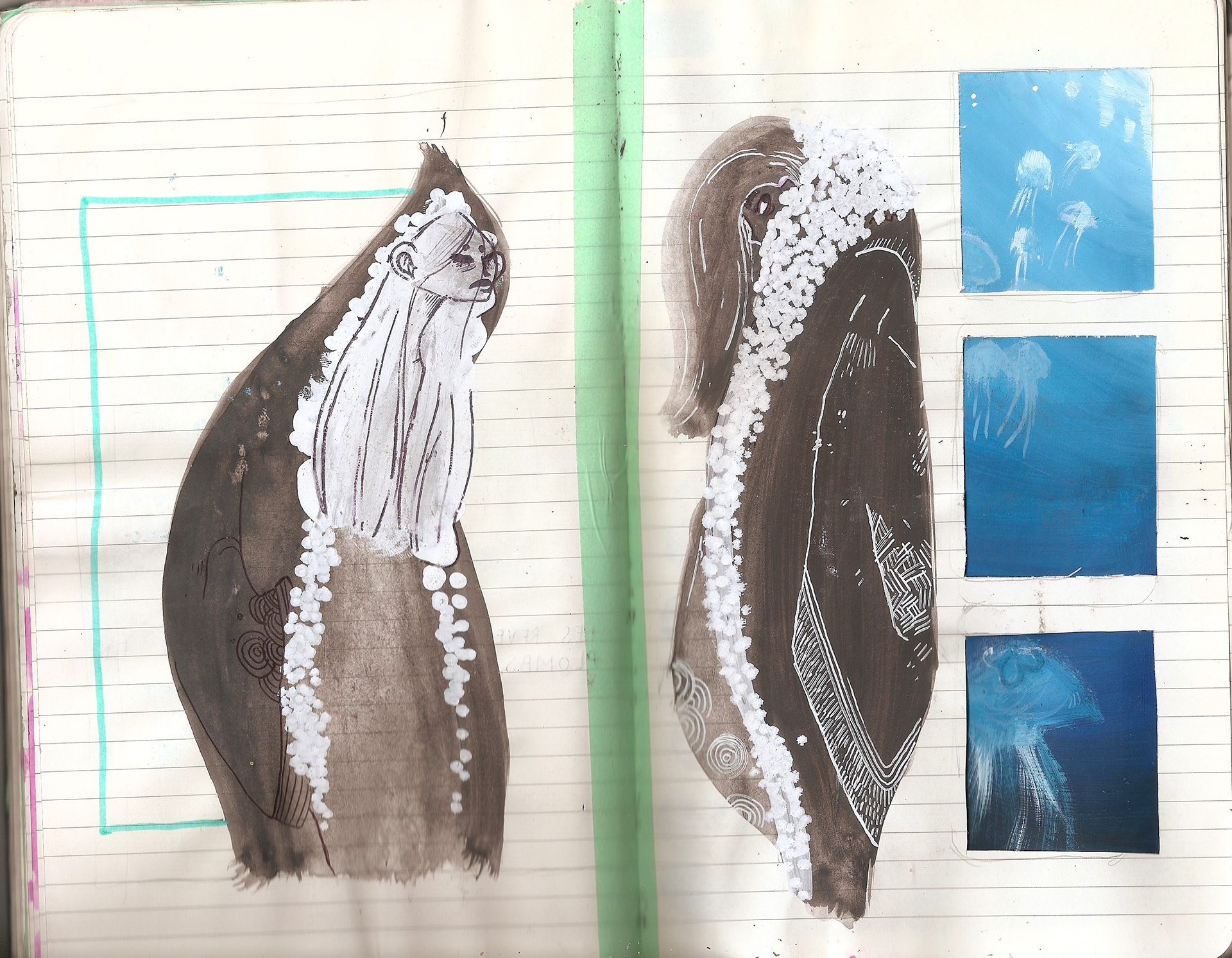 quelques gouaches, aquarelle et encre noire